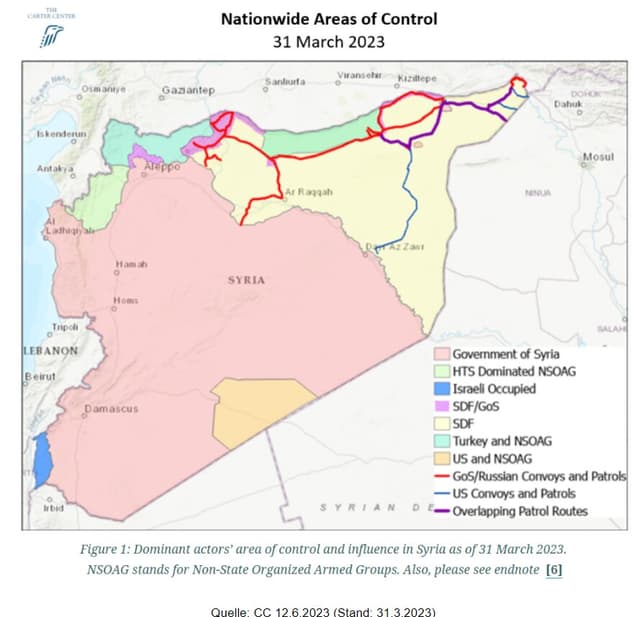 Brookings (27.1.2023): Syria’s dissolving line between state and nonstate actors, https://www.brookings.edu/blog/order-from-chaos/2023/01/27/syrias-dissolving-line-between-state-and-nonstate-actors/, Zugriff 27.6.2023