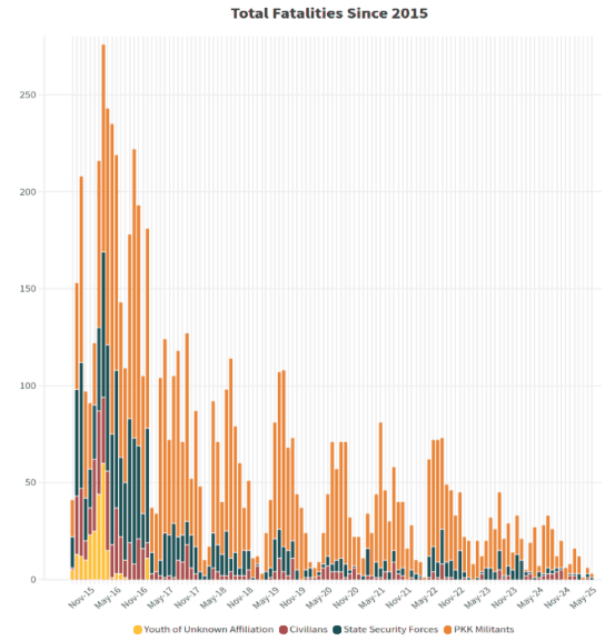 Am 12.5.2025 gab die PKK nach der Abhaltung ihres 12. Parteikongresses vom 5.-7. Mai im Nordirak ihre Auflösung und das Ende des bewaffneten Kampfes bekannt (ICG 16.5.2025; vgl. ANF 12.5.2025, BPB 16.6.2025, AlMon 12.5.2025). Die Regierung verfolgt eine äußerst vorsichtige Herangehensweise, die von Diskretion geprägt ist. Über die Vorteile für die Kurden ist wenig bekannt, abgesehen von besseren Lebensbedingungen für Öcalan, der seit seiner Festnahme 1999 in Einzelhaft auf der Gefängnisinsel İmralı sitzt, und rechtlichen Maßnahmen, die eine Strafmilderung oder Freilassung für Tausende von politischen Gefangenen ermöglichen würden, die wegen "Terrorismus" im Zusammenhang mit der PKK inhaftiert sind. Bislang gab es keine Jubelrufe oder Siegesbekundungen von beiden Seiten (AlMon 12.5.2025). Allerdings kritisierte die Ko-Vorsitzende der DEM-Partei, Tülay Hatimoğulları, nach fünf Wochen am 22. Juni, dass es keine greifbaren Schritte der Regierung in Richtung Demokratisierung oder Friedensprozess gebe. Sie forderte konkrete Maßnahmen, wie etwa die umgehende Freilassung politischer Gefangener, - darunter Figen Yüksekdağ, Selahattin Demirtaş - die Umsetzung der Urteile des Europäischen Gerichtshofs für Menschenrechte (EGMR) und die Aufhebung repressiver Gesetze, insbesondere im Kontext der sogenannten Kobanê-Prozesse. Hatimoğulları machte deutlich, dass der aktuelle Moment eine Chance für Verhandlungen sei, aber keine Garantie (ANF 22.6.2025). Der zweite Ko-Vorsitzende der DEM-Partei, Tuncer Bakırhan, forderte angesichts der ersten symbolischen, für die 11. Juli angekündigten [Anm.: nach Redaktionsschluss] Entwaffnung von PKK-Kämpfern, dass der türkische Staat mit demokratischen Reformen reagieren soll, darunter die Anerkennung der Rechte der kurdischen Sprache, die Freilassung politischer Gefangener und die Wiederherstellung politischer Freiheiten. Bakirhan drängte außerdem auf die rasche Bildung einer parlamentarischen Kommission, die die Wiedereingliederung ehemaliger Kämpfer überwachen und umfassendere kurdische Fragen durch Gesetzgebung regeln soll (Rudaw 9.7.2025).
