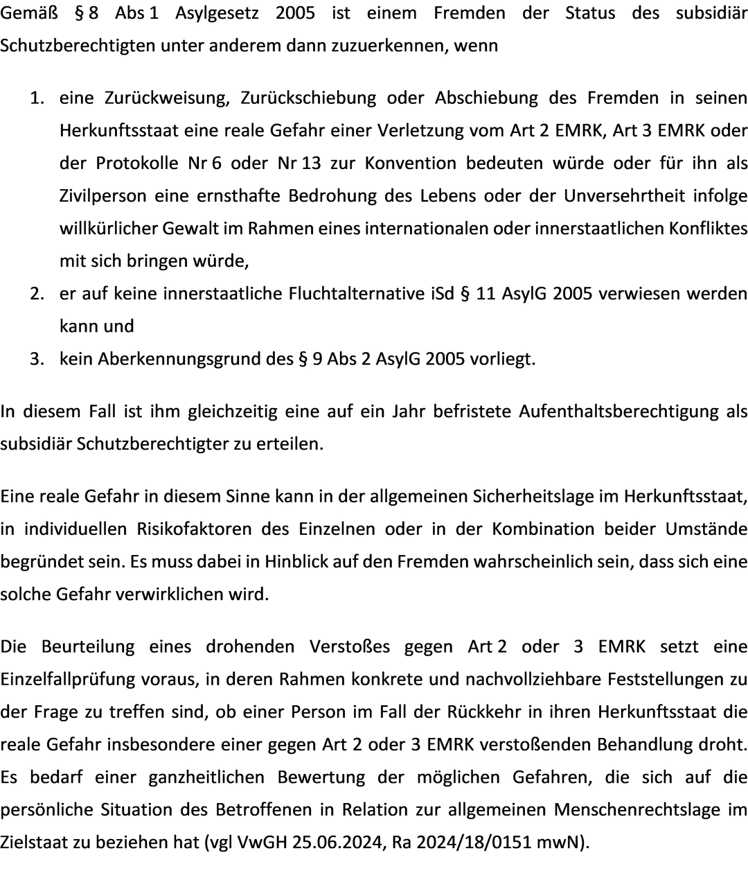 Eine Innerstaatliche Fluchtalternative steht dem BF ebenso nicht zur Verfügung, da eine solche für den BF unzumutbar ist. Unter Hinweis auf die Euaa Interim Country Guidance vom Juni 2025 (S. 68 f) ist eine Neuansiedlung in Damaskus-Stadt nur in Ausnahmefällen zumutbar: „Such exceptional cases would in particular include some adult applicants with significant financial means or who have a support network that is willing and capable of assisting them in accessing basic subsistence if they settle in the city.'“ Dass diese Kriterien beim BF vorlägen, ist im Verfahren nicht hervorgekommen. Insbesondere ist nicht hervorgekommen, dass er in Damaskus-Stadt ein familiäres Netzwerk hätte, das ihn unterstützen könnte, oder besonders finanzstark wäre.