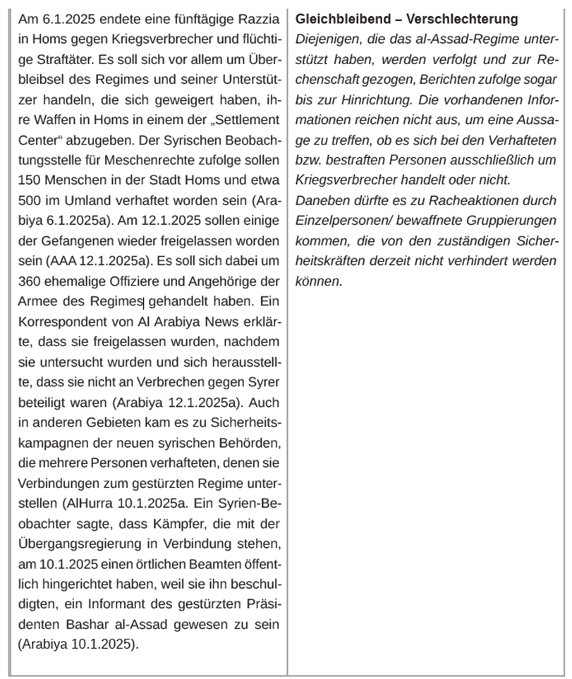 1.3.1. Auszug aus den Länderinformationen der Staatendokumentation Syrien aus dem COI-SMS, Version 12, vom 08.05.2025: