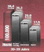 „1. Die beklagte Partei ist ab sofort schuldig, es im geschäftlichen Verkehr zu unterlassen, für 'Heute' einen Reichweitenvorsprung gegenüber periodischen Druckwerken von Mitbewerbern zu behaupten, zu veröffentlichen und/oder zu verbreiten, wenn dieser nicht außerhalb der jeweils maßgeblichen statistischen Schwankungsbreite liegt und auf diesen Umstand nicht gleichermaßen auffällig hingewiesen wird, insbesondere dem Druckwerk 'Heute' unter Verweis auf die Media-Analyse 08/09 in der Kategorie der Leser in Wien, Altersgruppe der 30 bis 39 jährigen, ohne jegliche Aufklärung über die fehlende statistische Signifikanz einen Vorsprung gegenüber der Tageszeitung 'Kronen Zeitung' zuzuschreiben oder zuschreiben zu lassen.