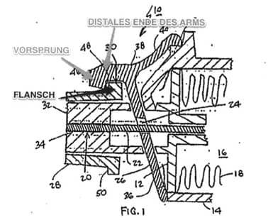 Beim Eingriffsgegenstand ist ein „Arm“ im Sinne der Entscheidung der EPA Beschwerdekammer bzw im Sinne des Merkmals g2 des Klagspatents eindeutig vorhanden.
