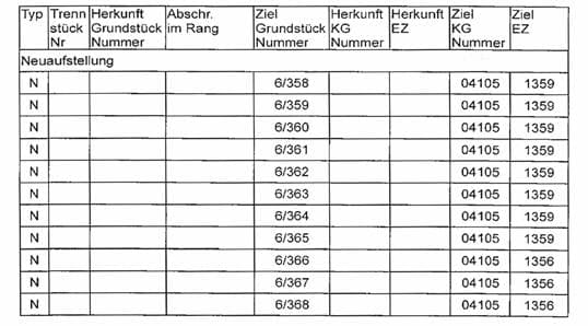 die Ersichtlichmachung der Gst 6/367 6/368 6/369 6/370 6/371 6/372 6/373 6/374 6/375 6/376 6/377 6/378 6/379 6/380 6/381 6/382 6/383 6/384 6/385 6/391 als weitere dienende Grundstücke.