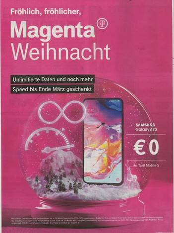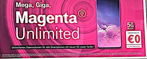 [2] Die Beklagte bewarb ihre Produkte in Fernsehwerbespots mit dem gesprochenen Text: „Mega. Giga. Magenta Unlimited. Unlimitiertes Datenvolumen für alle Smartphones mit neuen 5G READY Tarifen; wie das HUAWEI P30 Pro. Zum ultimativen Startpreis von 0 Euro“ und folgendem Bild: