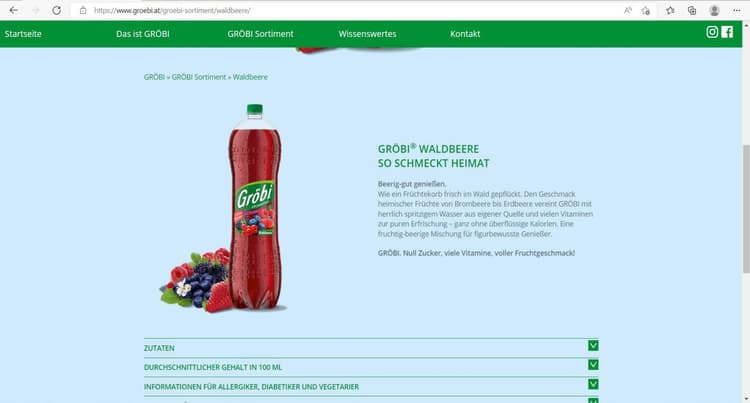 Ein Klick auf den grünen Link „ MEHR ZU GRÖBI®WALDBEERE “ führt zu folgender Ansicht: