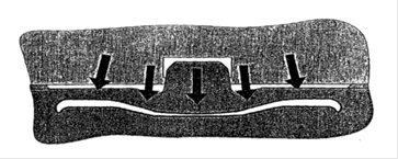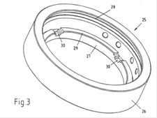 betrachtet, so erkennt man, dass die beim Spannen bewirkte Deformation (wie durch die Pfeile eindeutig gekennzeichnet und angegeben) über eine relativ große Fläche erfolgt und hier wiederum durch einen speziellen Schlitz unterhalb der Nocken bestimmt wird. Dabei heißt es im Patentanspruch „... Dabei gibt der Zentriernocken in axialer Richtung federnd nach. Der Druck wird mit Hilfe des Einschnitts 14 aufgenommen“.