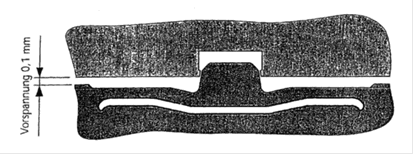 Ohne dass es im Vorhalt angeführt wird, ist es im Zusammenhang mit den Erläuterungen der EP 897 776 A2 für jeden auf dem Gebiet des Maschinenbaus Tätigen klar, dass die von Anfang an flächenhafte Ausbildung des Kontakts zwischen Zentriernocken (rechts) und Seitenflächen der Nut (links) gewollt ist, um hier zu einer möglichst geringen Deformation zu kommen. Diese soll überwiegend im Bereich des Einschnitts 14 erfolgen, wie in der Figur 4b dargestellt.