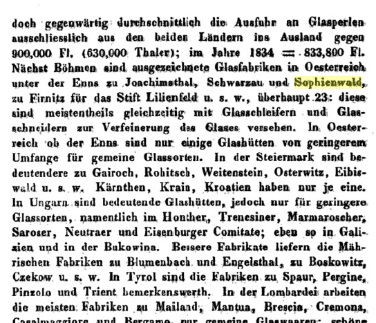«Die venezianische Glaskunst hatte großen Einfluss auf den südlichen Teil Österreichs. Für das Waldviertel war jedoch die böhmische Glasindustrie besonders wichtig, die sich im 14. Jhdt. rasch entwickelte. Zur Glaserzeugung wurde in Böhmen – anders als in Venedig – Pottasche verwendet, wodurch das Glas stabiler wurde und geschliffen bzw. geschnitten werden konnte.