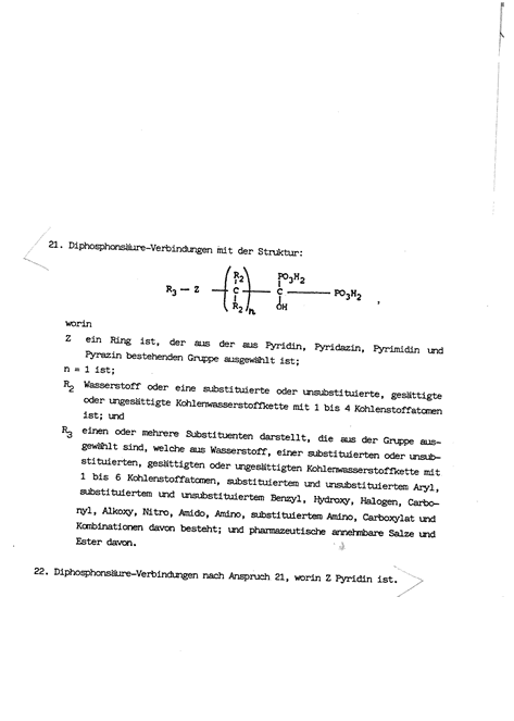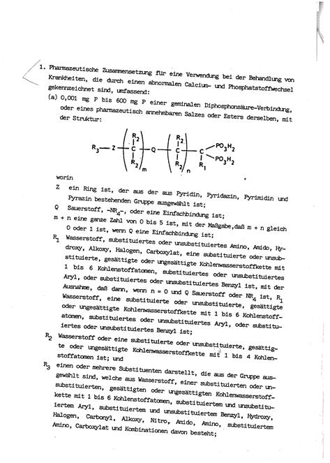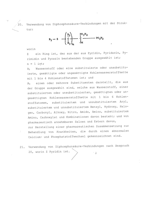 4.3 Der ursprüngliche Anspruch 21 und der abgeleitete Anspruch 22 schützten generell eine bestimmte Diphosophonsäure–Verbindung. Der Schutzbereich wird durch die Umformulierung „Verwendung von…zur Herstellung einer pharmazeutischen Zusammensetzung zur Behandlung von Krankheiten, die durch einen abnormalen Calcium- und Phosphatstoffwechsel gekennzeichnet sind“ jedenfalls enger. Aus der Nennung einer bestimmten Indikation folgt eine Beschränkung, denn geschützt soll das Arzneimittel nur sein, wenn es für einen bestimmten Zweck verwendet wird (17 Ob 26/08k - Pantoprazol mH auf die E der Großen Beschwerdekammer G 2/88 GRURInt 1990, 522 – reibungsverringernder Zusatz).