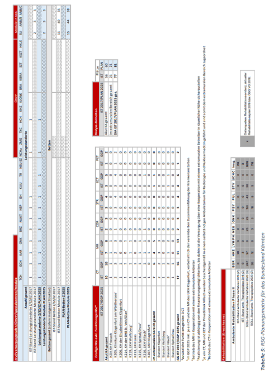 (7) Die Regionalen Strukturpläne Gesundheit (RSG) sind je Bundesland entsprechend den Vorgaben des ÖSG gemäß Abs3 Z12 bezüglich Inhalten, Planungshorizonten und Planungsrichtwerten kontinuierlich weiter zu entwickeln und regelmäßig zu revidieren. Die Qualitätskriterien des ÖSG gelten bundesweit einheitlich. Die Schwerpunkte der RSG sind jedenfalls: