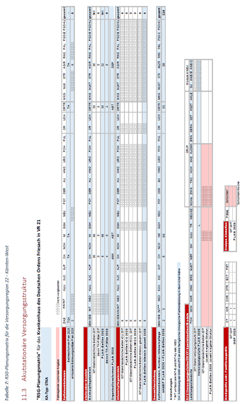 1. Festlegung der Kapazitätsplanungen standortbezogen für den akutstationären Bereich mit Angabe der Kapazitäten, Organisationsformen, Versorgungsstufen, Referenz-, Spezial- und Expertisezentren je Fachbereich;