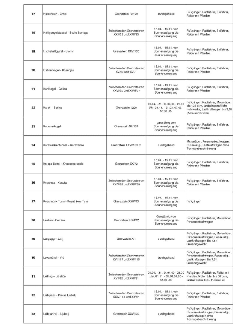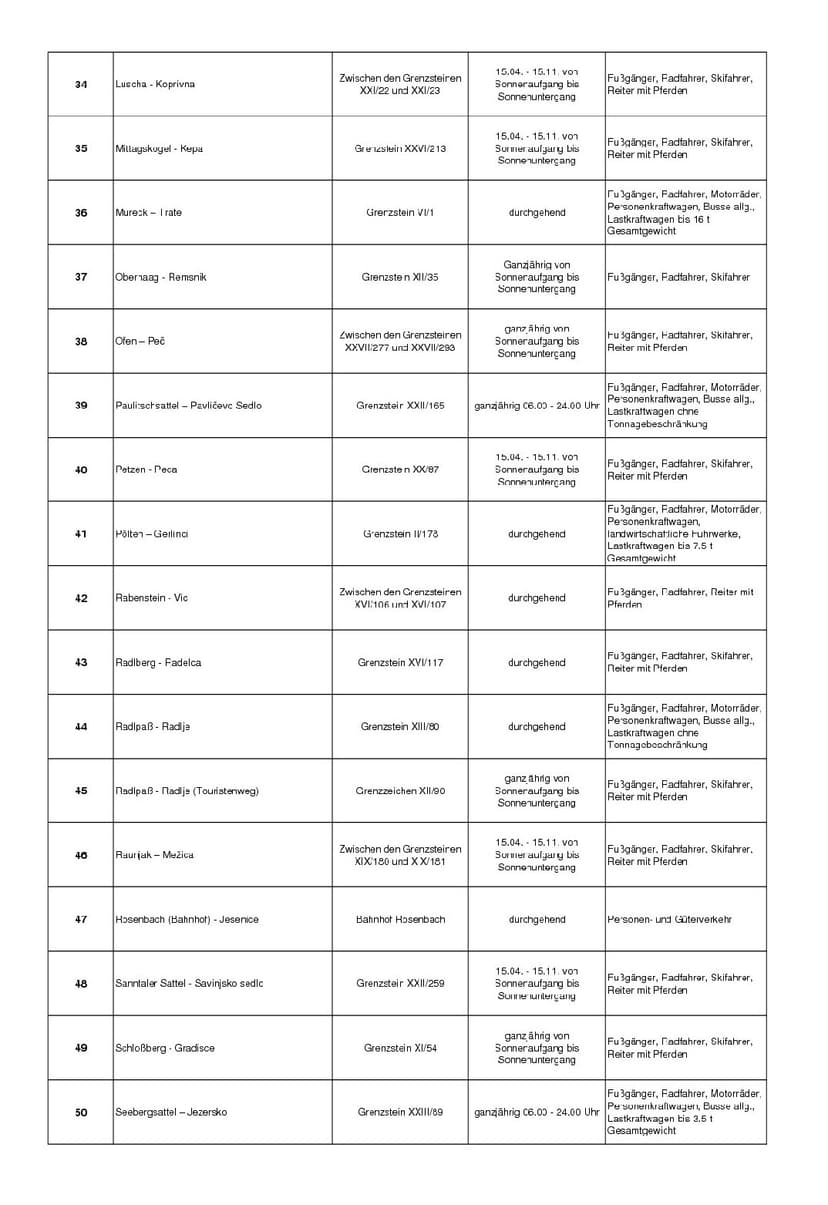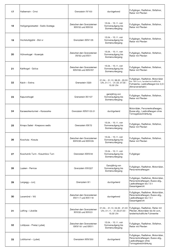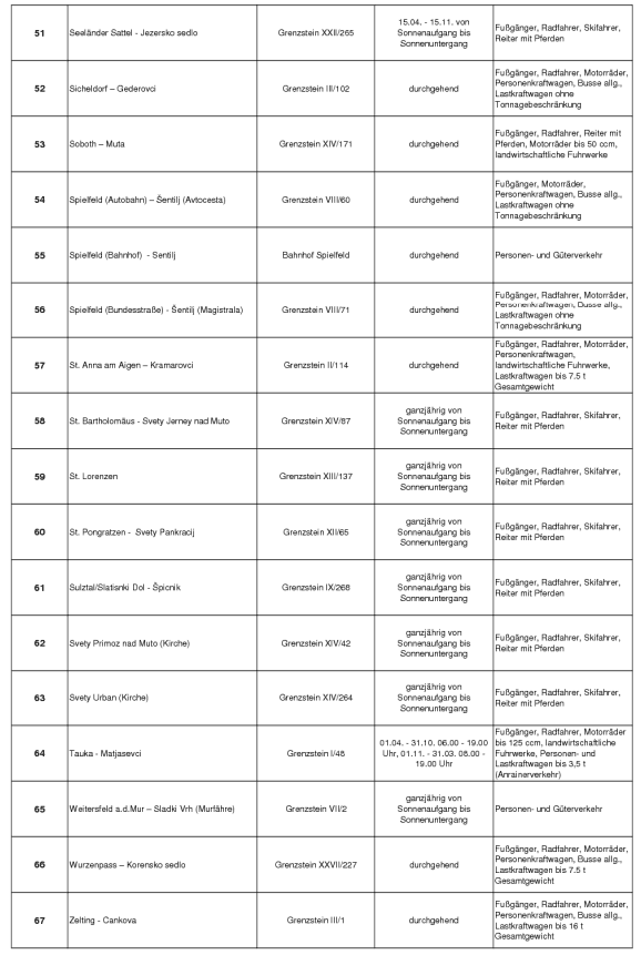 Die Benützung dieses Grenzüberganges ist, unbeschadet der gesetzlichen Voraus-setzungen der Ein- und Ausreise ausschließlich jenen Personen gestattet, welche im Auftrag des Herrn Ing. Johann MURI für dessen land- und forstwirtschaftlichen Betrieb, etabliert in Trögern 10, 9195 Eisenkappel, im Rahmen des zollrechtlich zugelassenen Nebenwegverkehrs mit Holztransporten und land- und forstwirtschaftlichen Arbeiten beschäftigt sind.