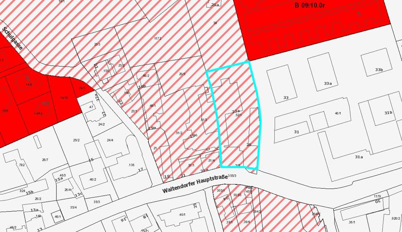 4. Der maßgebliche Bereich des Deckplanes 1 (Bebauungsplanzonierungsplan) des 4.0 Flächenwidmungsplanes idF des 4.04 Flächenwidmungsplanes der Landeshauptstadt Graz stellt sich wie folgt dar (das betreffende Grundstück ist türkis umrandet und rot schraffiert):