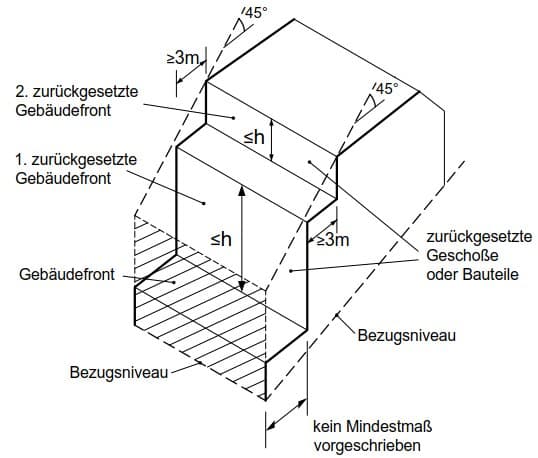 3. ausreichende Belichtung: jene Belichtung auf Lichteintrittsflächen von Hauptfenstern, die durch einen freien Lichteinfall unter 45° (gemessen von der Horizontalen) bei einer seitlichen Abweichung (Verschwenkung) um nicht mehr als 30° gegeben ist;